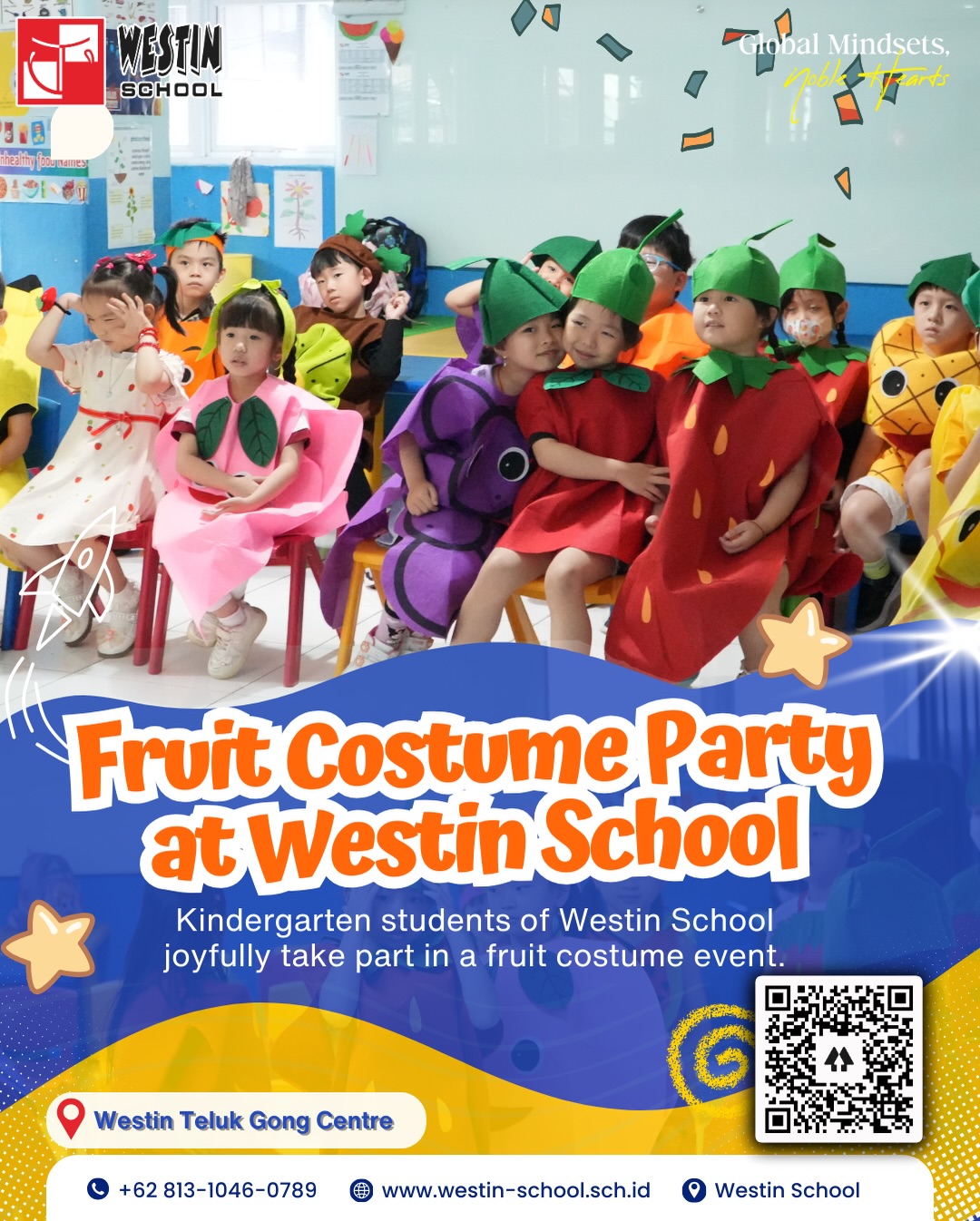 A day full of colors and laughter as Kindergarten students of Westin School joyfully took part in our Fruit Costume Party ?? From strawberries, grapes, pineapples, to watermelons?”everyone showed up in adorable and creative fruit costumes. This fun-filled event helped nurture children?™s confidence, creativity, and togetherness in a joyful and positive learning environment ???? Looking for a school where learning is fun and meaningful? Discover more about Westin School and be part of an inspiring learning journey! ?? Westin Teluk Gong Centre ?? www.westin-school.sch.id #FruitCostumeParty #FruitCostumePartyAtWestinSchool #WestinSchool #WestinTelukGongCentre #KindergartenLife