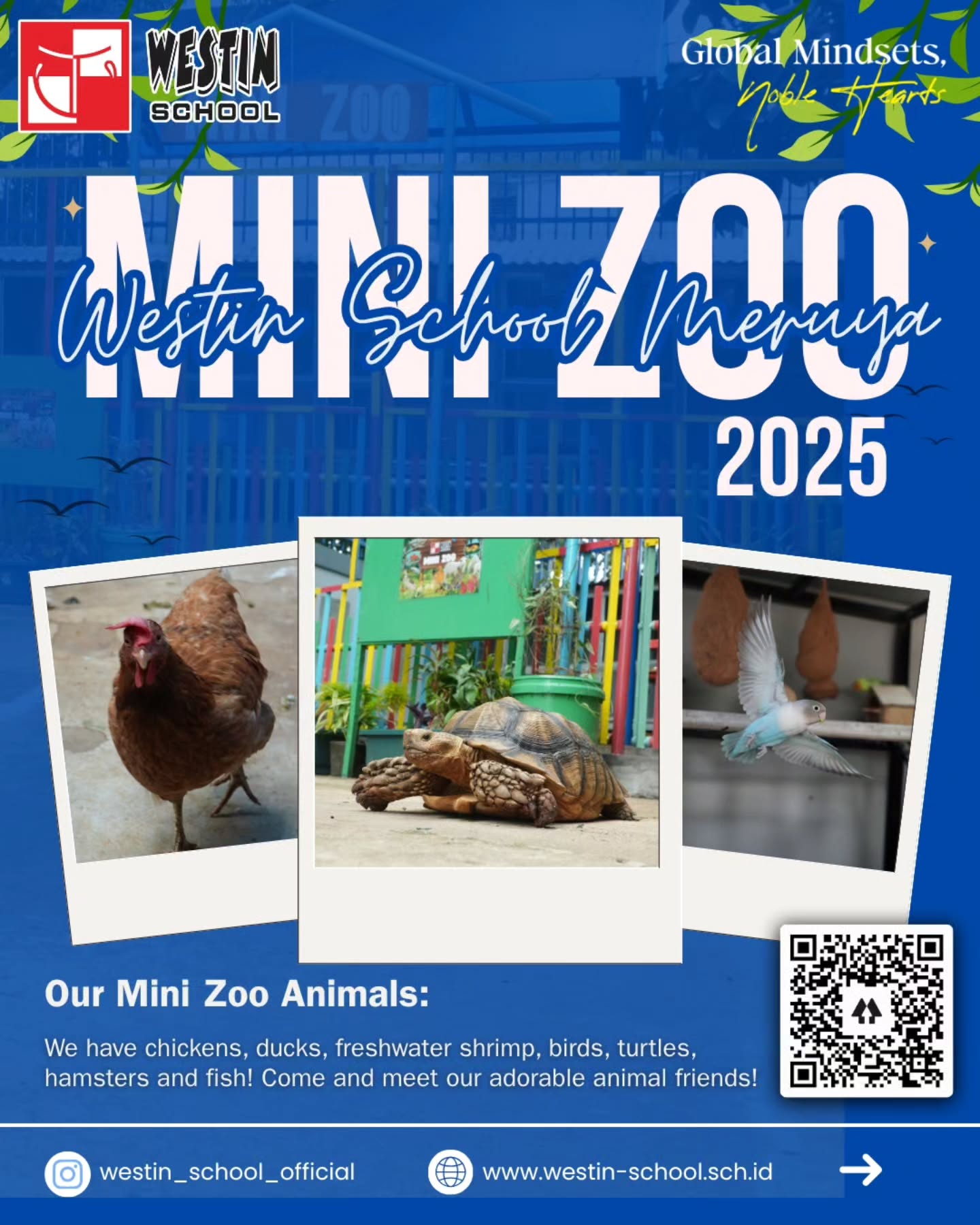 At Westin School Meruya, learning about animals becomes more fun and engaging! ?? Our Mini Zoo is designed to help students explore and understand different kinds of animals firsthand, including chickens, ducks, birds, turtles, freshwater shrimp, hamsters, and various fish like catfish and tilapia. ????? Through this hands-on experience, children learn to love nature while discovering the unique traits of each animal in an enjoyable and interactive way. ??? ?? Visit us at www.westin-school.sch.id and experience a whole new way of learning at Westin School Meruya! #WestinSchoolMeruya #MiniZoo #FunLearning #AnimalLovers #SchoolLife #WestinSchool #GlobalMindsets #noblehearts