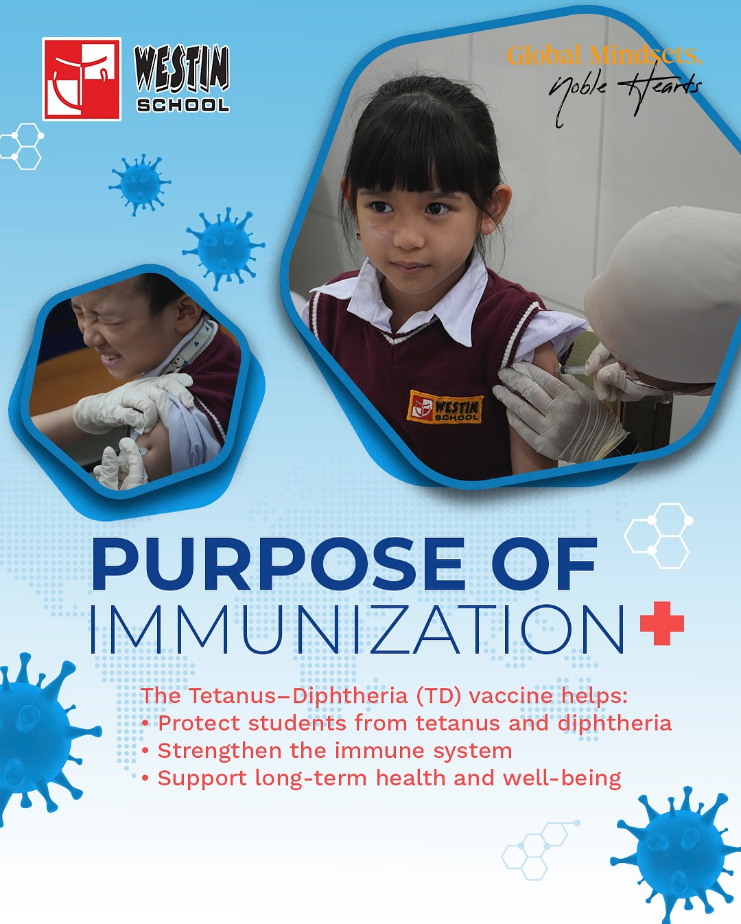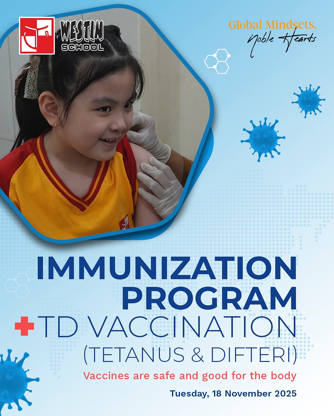 Westin Primary School successfully conducted the TD (Tetanus?“Diphtheria) Immunization Program for all students on Tuesday, 18 November 2025. This program was carried out in collaboration with Puskesmas Kelurahan Pejagalan, ensuring that every procedure followed proper health and safety standards. Immunization plays an essential role in protecting children from preventable diseases and supporting their long-term well-being. We extend our gratitude to all parents, teachers, and health workers for their support and cooperation, which helped the program run smoothly. Healthy students, brighter futures! #WestinSchool #WestinPrimary #GlobalMindsets #NobleHearts #SchoolProgram #SchoolActivity #ImmunizationProgram #VaccinationDay