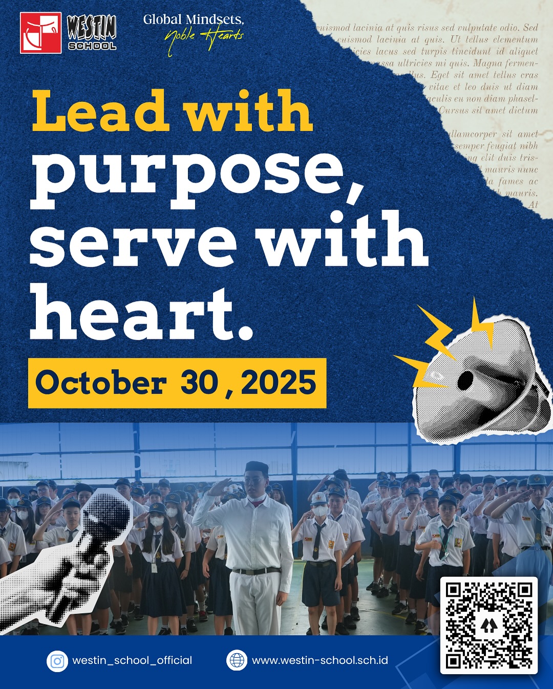 OSIS Inauguration 2025/2026 | Westin School Teluk Gong A new beginning for young leaders to rise, serve, and inspire. On Thursday, October 30th, 2025, Westin School held the OSIS Inauguration for the 2025/2026 term, marking a meaningful moment of transition, unity, and hope. With integrity as our foundation and collaboration as our strength, we are ready to lead, serve, and inspire. To the previous OSIS board, thank you for your dedication and heart. To the new leaders, may your journey be filled with courage, creativity, and purpose. Together, we step forward, creating change. Visit our website for more stories: ?? www.westin-school.sch.id Follow @westinstudentcouncil to see our latest activities and student initiatives. #OSISWestin #WestinLeaders #WestinSchool #WestinTelukGong #OSISInauguration #RiseTogether #LeadWithIntegrity #CreatingChange #GlobalMindsets #noblehearts